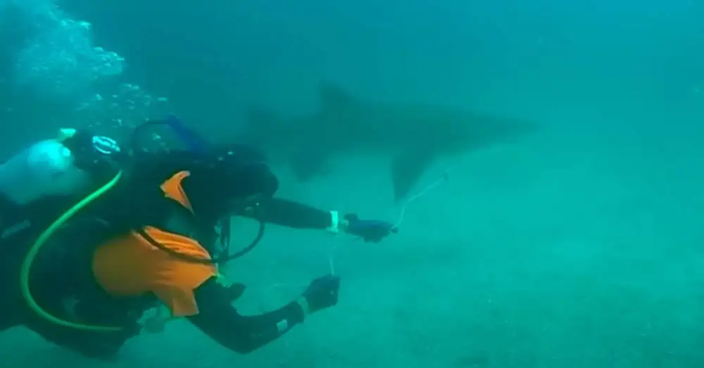 On this unforgettable afternoon, Iñaki, the owner of Diving Byron Bay, was leading a small group of divers when he saw the unmistakable shadow of several sharks. To most people, this would be a heart-pounding moment of fear. But Iñaki noticed something wrong. One of the sharks wasn’t gliding freely. It was struggling.