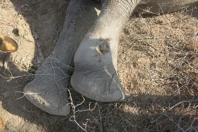 The team arrived and, with expert precision, darted the elephant to immobilize him. As the massive bull lay peacefully in the dust, the veterinarians got their first close look at the leg. What they found stunned them. This wasn’t a new injury. It was an old fracture in his ankle (tarsal) bones that had healed incorrectly. This magnificent animal had likely suffered a traumatic fall or fight months, maybe even years, earlier. He had been living with this constant, grinding pain, surviving and carrying on with his life in quiet agony.