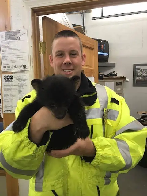 But this is where the story takes an amazing turn. The officer, whose heart broke watching the scene, refused to let the cub’s story end there. He immediately blocked the road to stop traffic. He then slowly approached the tiny, trembling bear. It was too weak and tired to even run. He gently wrapped the baby animals in a blanket and called the New Hampshire Fish and Game Department.