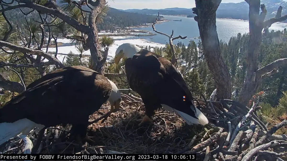 Every day, thousands tune in to the Friends of Big Bear Valley (FOBBV) webcam to watch the couple tend to their nest. They build together, rest together, and even bicker like an old married pair — only to settle every argument side by side at dusk.