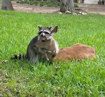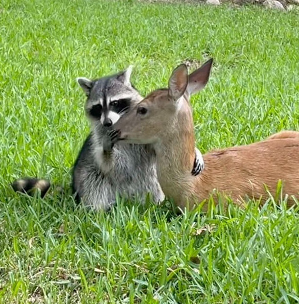 The raccoon, once clinging to survival, now offers comfort to others. The deer, once alone, now knows companionship. “It’s like they understand each other,” Long said. “They’ve both been through loss, and somehow they found healing together.”