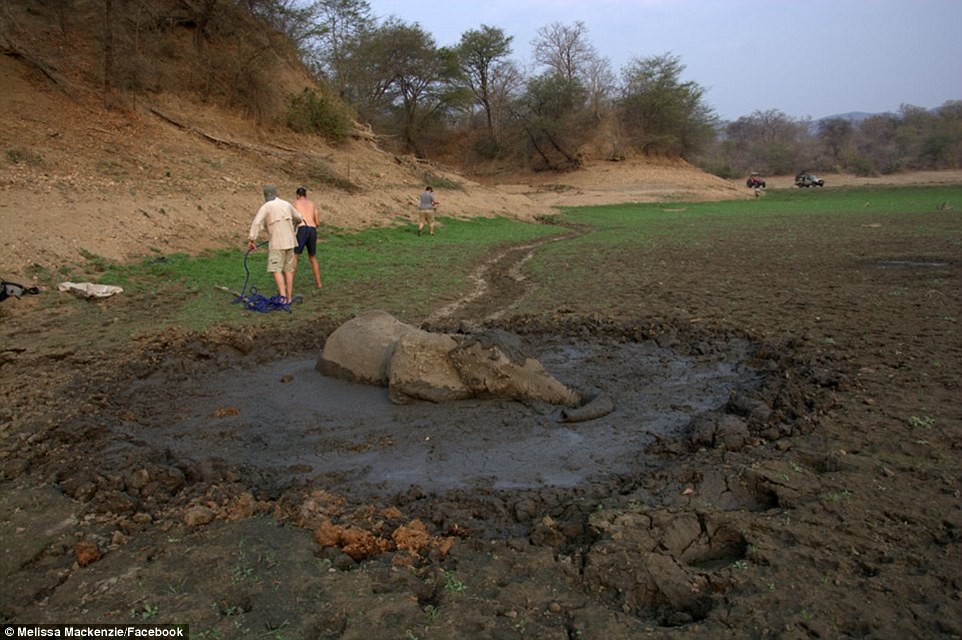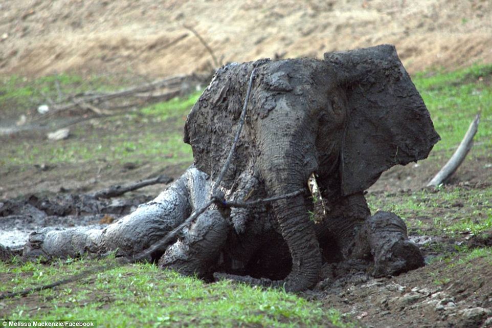 The dramatic rescue unfolded near Lake Kariba, where guides from Gache Gache Lodge discovered a young elephant buried almost up to his neck in a thick mud pit. It was believed the animal had been trapped for three to four days, struggling to free himself under the intense African sun.