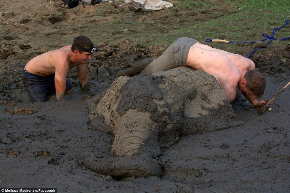 The mud was another challenge. It was so thick that the team couldn’t get the ropes under the elephant’s belly. In a creative solution, Taylor used long sticks to thread the rope around the animal’s neck in a way that wouldn’t strangle him, allowing them to pull him free.
