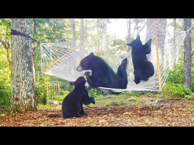 In the following weeks, Bertha and her cubs continued to visit Amy’s yard. Sometimes they’d nap under the trees; other times, they’d climb onto the hammock, as if checking whether it was still waiting for them.
