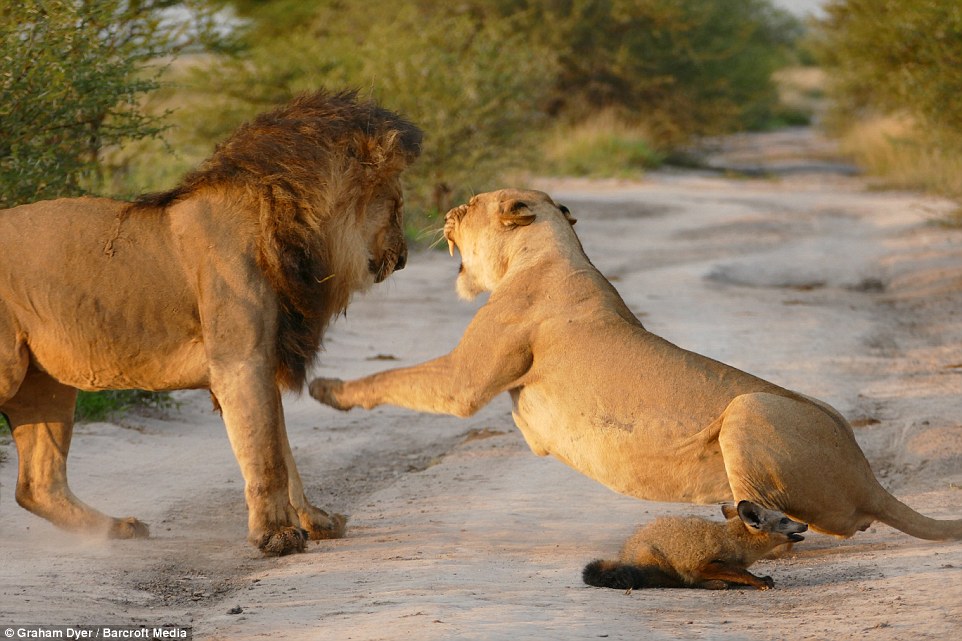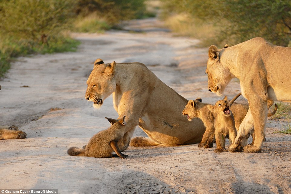 Mr. Dyer recalls arriving just as a lead lioness had caught the fox and delivered a brutal blow that injured its spine, leaving its hind legs paralyzed.