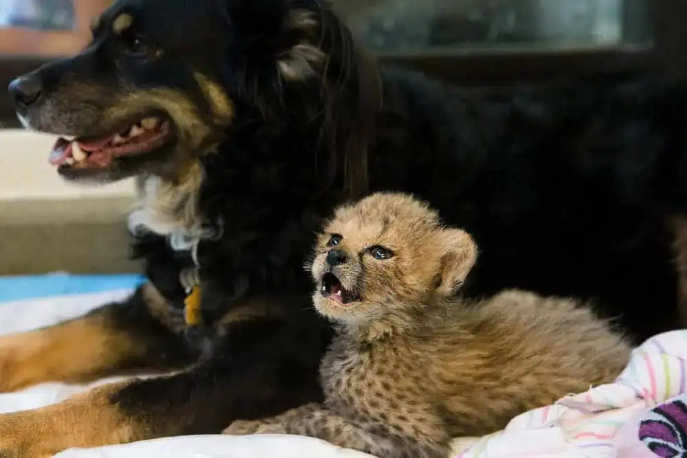 When the three cheetah cubs arrived at the nursery, they were weak, frightened, and heartbroken. Their cries echoed, a sound of pure loss. Zookeepers knew that without a mother’s comfort, their chances of thriving were slim. Cheetahs are naturally anxious animals, and the comfort of a mother (or a stand-in) is crucial in their early life. They needed a calm, steady, and loving presence. They needed Blakely.