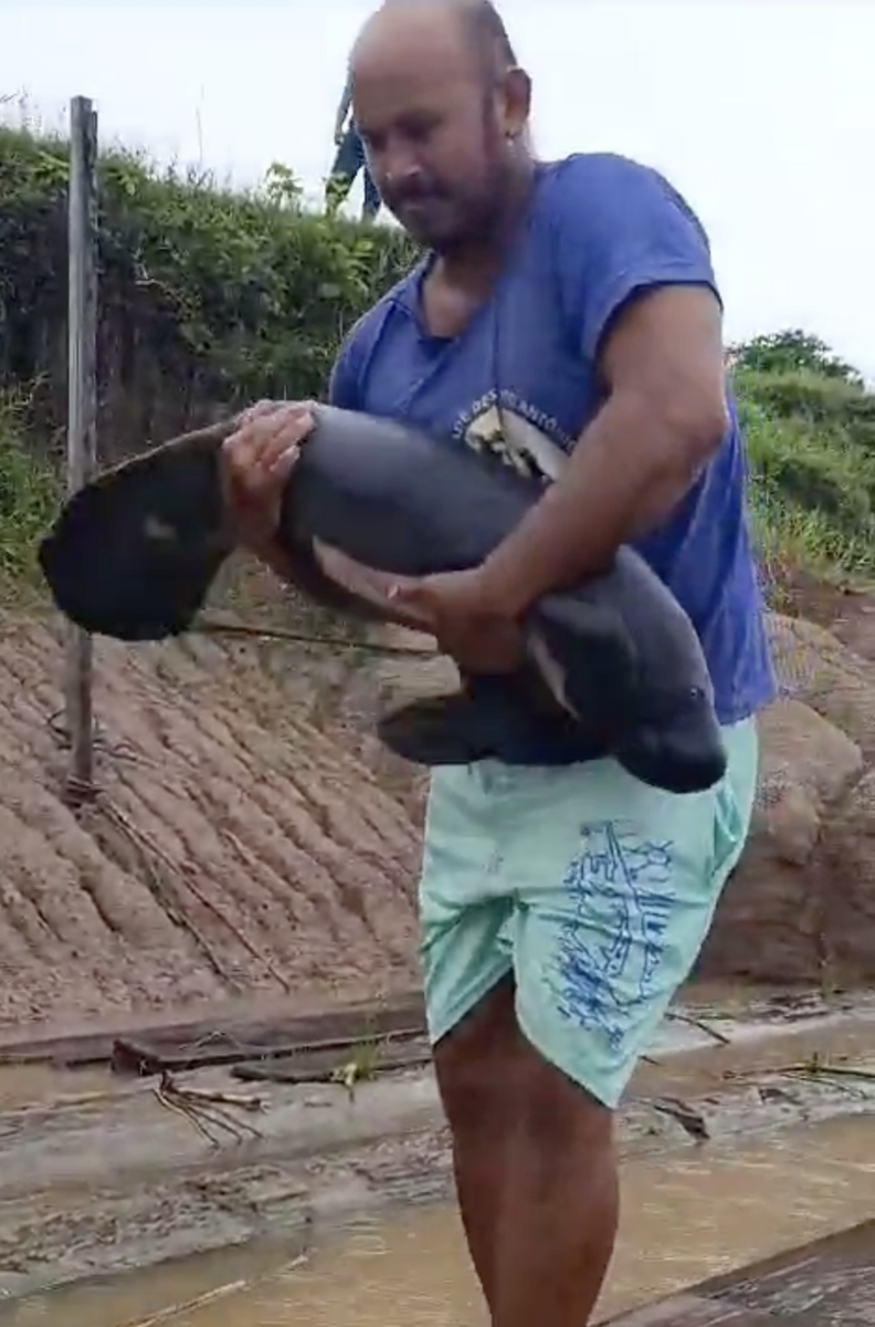Residents traveling by boat along the Coahoeri River in the Brazilian Amazon were surprised this week to spot what appeared to be a floating stick. Upon closer inspection, however, they realized it wasn’t a log at all — it was a baby Amazonian manatee, separated from his mother and struggling to survive.