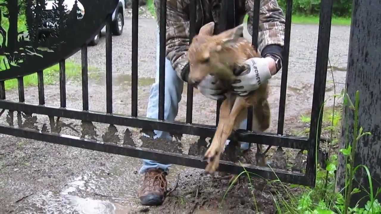 You are currently viewing Deer Rescue: Heartwarming Moment Kind Man Frees Trapped Fawn While Mama Waits