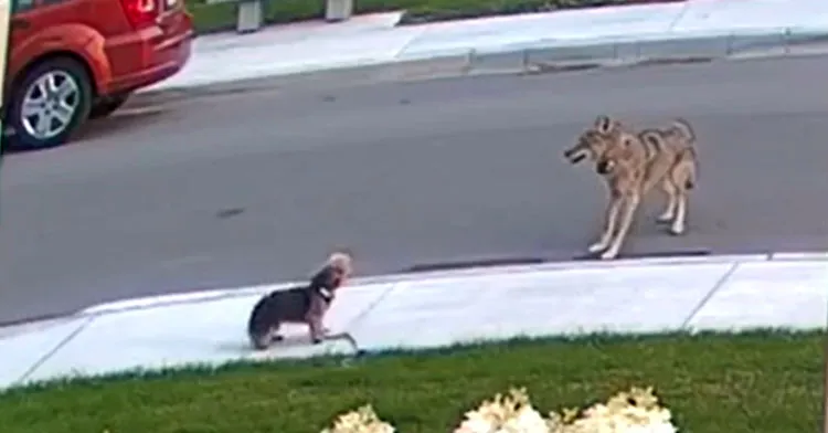 Most small dogs might freeze, run, or cower in the face of a coyote. But Macy, barely the size of a football, instantly switched into protector mode. In a moment that was caught on home security footage, Macy bravely placed herself between the coyote and her owner. Barking fiercely and refusing to back down, she fought to shield the child from harm.