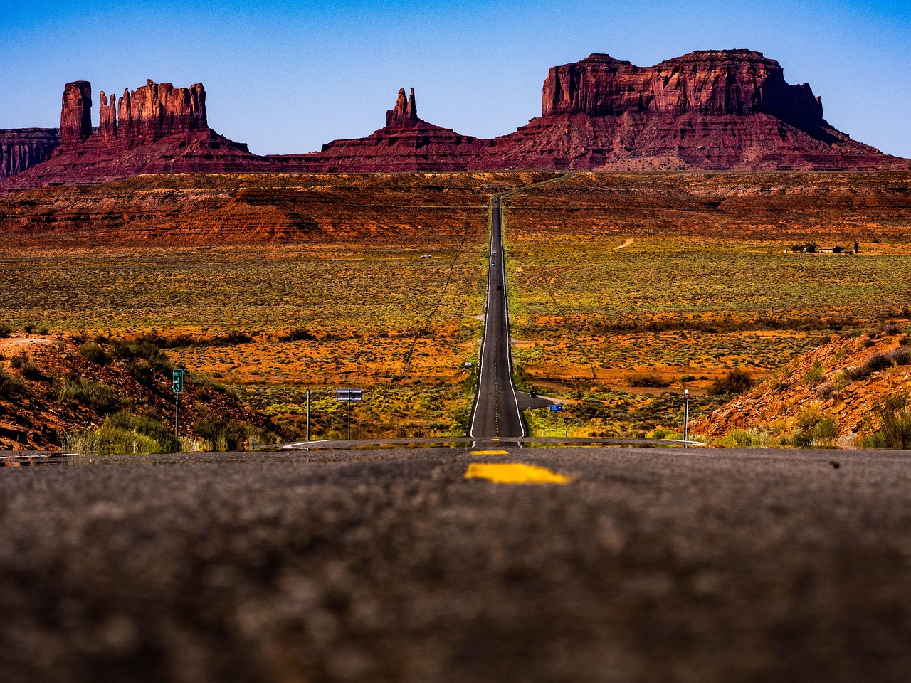 Look both ways. Behind you: Monument Valley. Ahead: endless road — a reminder that endings are just well-timed pauses.
