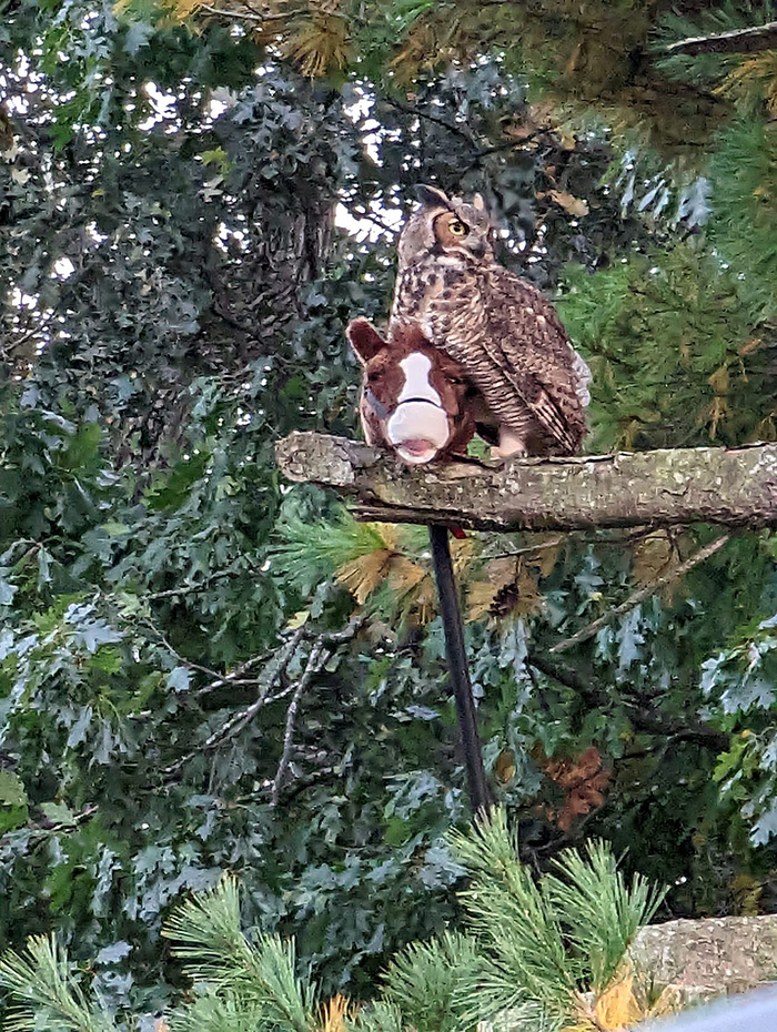 “The young neighborhood owl has stolen this stick horse and is flying around the neighborhood with it,” Lind posted on Facebook. “Hilldale, Forest Park, Ridge Lane neighbors—if your child is missing their stick horse, you’ll have to talk to the owl!”