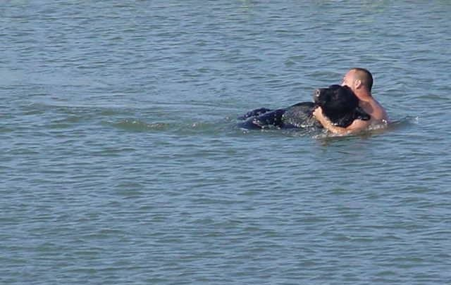 The bear, now half-submerged, began to sink. Warwick reached it just in time, grabbing the animal from behind to keep its head above water. For the next several minutes, man and bear floated together—one fighting exhaustion, the other unconsciousness.