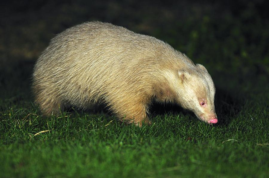 This badger isn’t a true albino. Experts believe it’s leucistic, meaning a genetic mutation has caused its fur to lose most of its pigment. Its dark eyes and a touch of color on the nose give away its true nature.