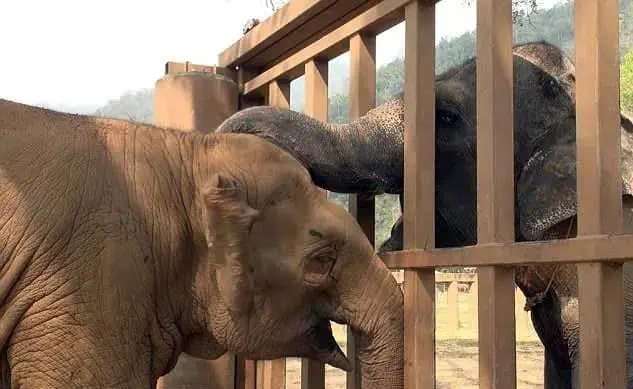 Ploy Thong, who had been tense and frightened, stood completely still, her trunk exploring the air, taking in the scent of her new friends. Then, she rumbled back—a deep, resonant sound of peace. The caretakers, watching this instant Blind Elephant Embrace, stood by with tears in their eyes. “She’s home,” one whispered.