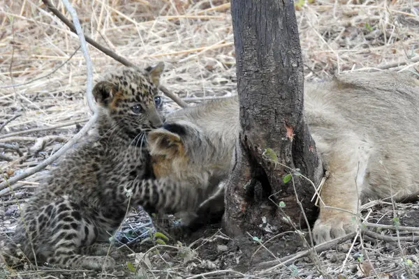 Lions and leopards compete for the same prey and territory. Adult lions often kill leopards to remove competition, and leopards are known to attack unguarded lion cubs.