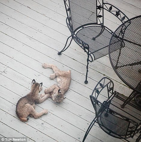 For Tim Newton, it became something even rarer — a full-on playdate with an entire lynx family on his porch.