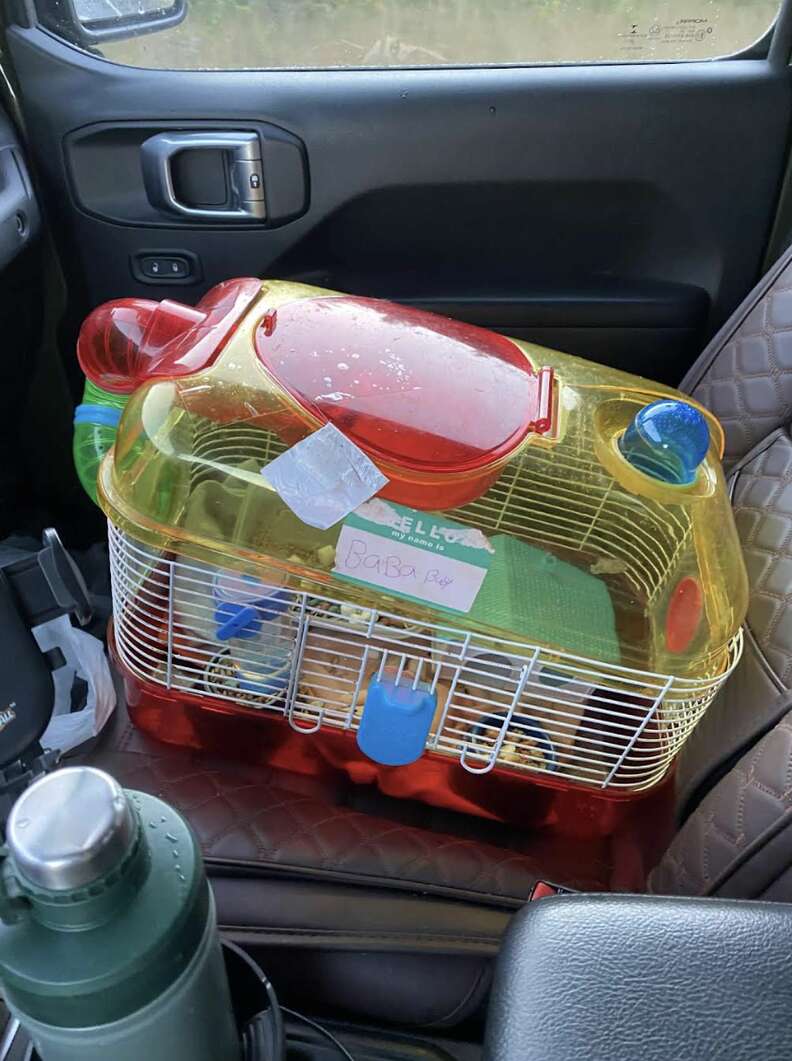 Inside was a tiny, terrified hamster, clearly abandoned and left for someone else to find — if at all.