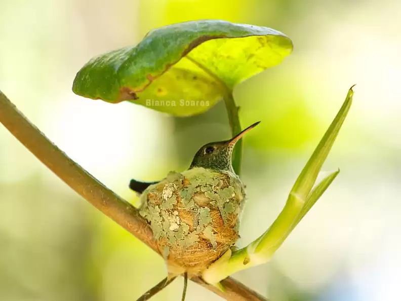 While most hummingbirds weave their nests from moss, spider silk, and bits of plant fiber, this mother bird had taken things a step further. She had carefully positioned a large leaf over her nest, creating a natural canopy that shielded her home from the scorching sun and tropical rain.