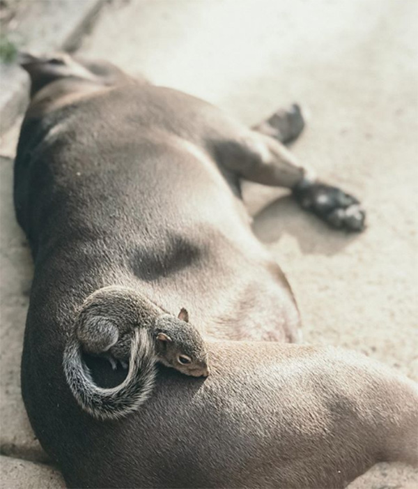 For days, the pair were inseparable: one pit bull, one baby squirrel, both out to prove the world wrong.
