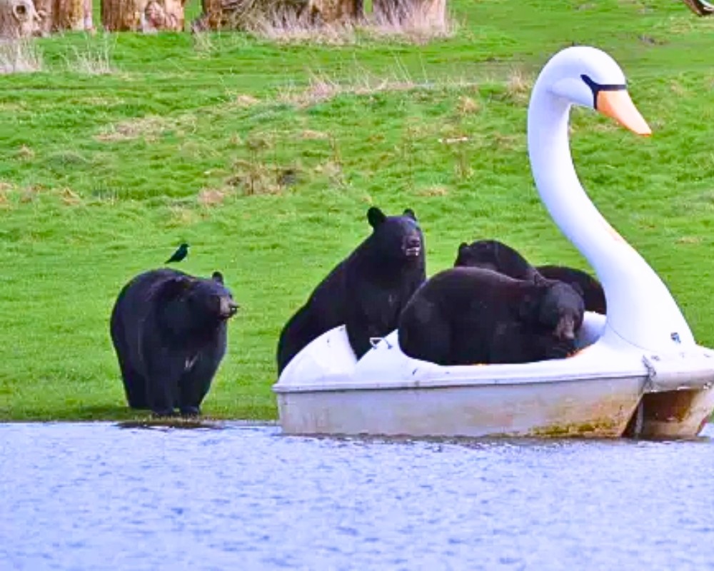 When unexpected flooding turned Woburn Safari Park into a temporary lake, the park’s wildlife found a creative way to make the best of it. A group of North American black bears surprised visitors and staff by transforming a swan-shaped pedalo into their new favorite toy. What began as a weather mishap quickly became a heartwarming moment of animals, nature, and human ingenuity working together.