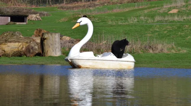 After days of heavy rain, part of the Bedfordshire safari park’s black bear enclosure was submerged under several inches of water. Rather than view it as a setback, the park staff saw an opportunity for enrichment. They borrowed a swan-shaped pedalo, placed it near the new “lake,” and watched the bears’ curiosity take over.