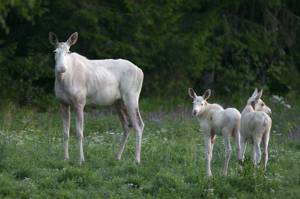 Even though these moose lack the typical brown camouflage that helps them blend into forest surroundings, there’s still much we don’t know about whether their white coloring affects their survival.