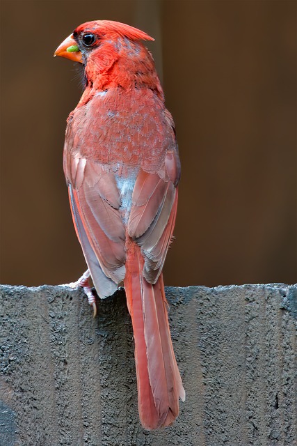| Male Color | Soft gray body with red highlights on the crest, face, wings, and chest. | Brilliant red all over (a “fire engine” red). |