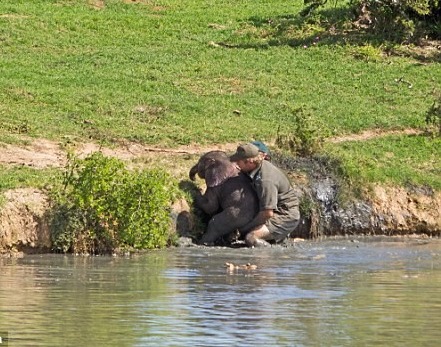 The two men waded in, waist-deep in mud and water. The baby elephant, exhausted, was barely moving. Together, the rangers heaved and pushed, using every ounce of strength to lift the slippery calf up the bank.