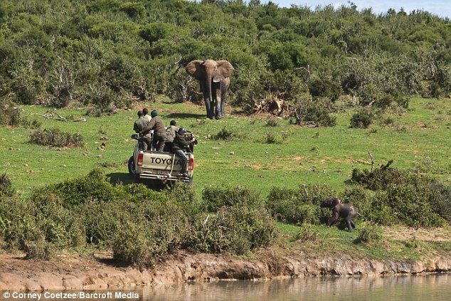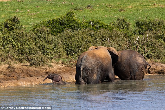 Scuba instructor and photographer Corney Coetzee, 39, was among those watching in shock. “The adult elephants were using their trunks to spray water on the bank, trying to soften the ground,” he said. “They even put their weight against the edge to break it down — but the bank was too steep.”