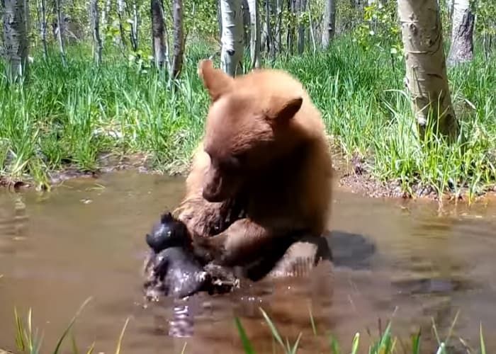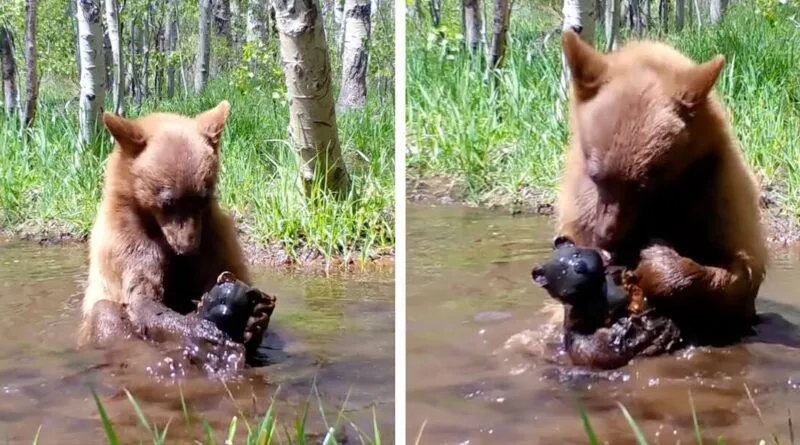 One particularly heartwarming and slightly bizarre scene captured by Sielsch’s cameras shows Tamarack engaging in playful antics with… a bear doll. Where the doll came from remains a mystery (“enigmatic origin” indeed!), but the footage is pure delight. Tamarack, with muddy paws sticking up in the air, wrestles and plays with his toy companion with infectious joy. Sielsch notes that this playful exuberance is a wonderful sign, typical of healthy, happy young black bears.