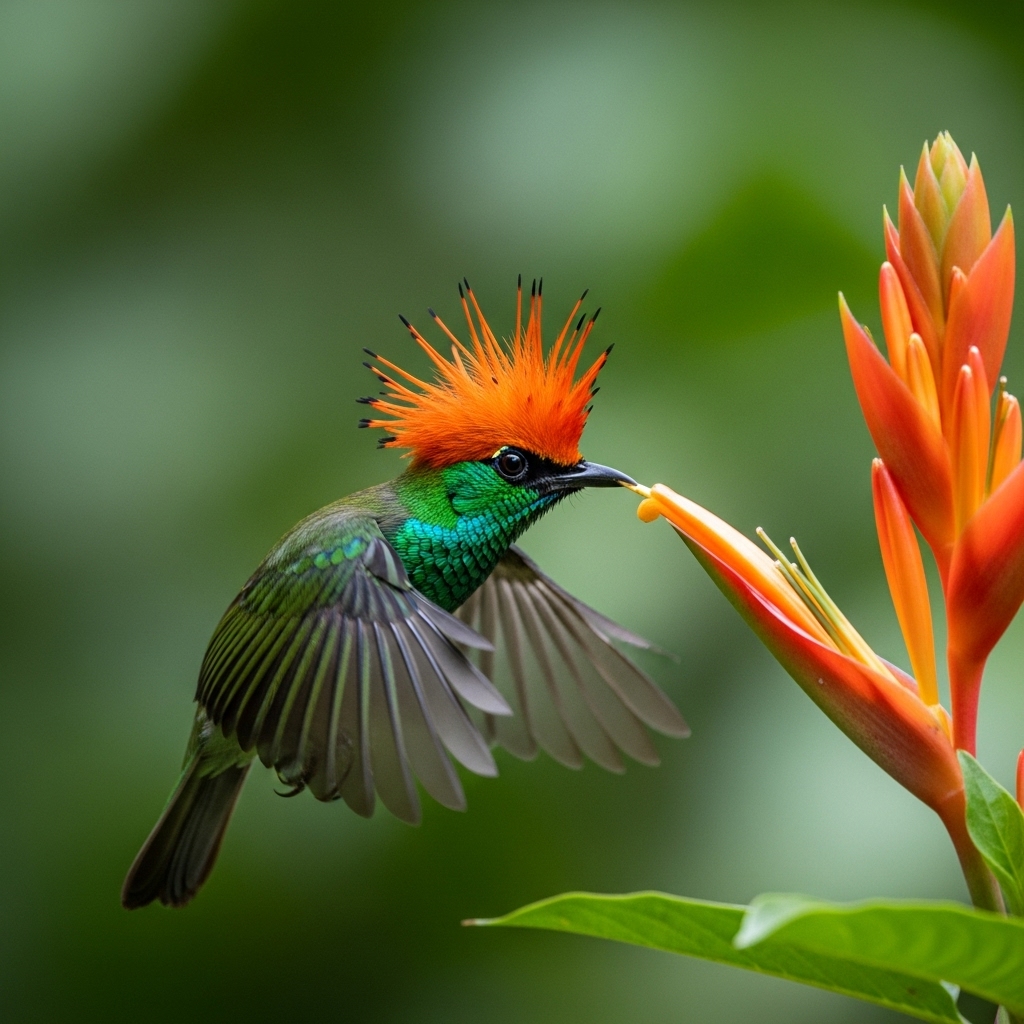 Imagine a creature so small it’s often mistaken for a large bee, yet so ornate it looks like a work of art. Now, give it a spiky, reddish-orange mohawk and the ability to hover and dart at impossible speeds.