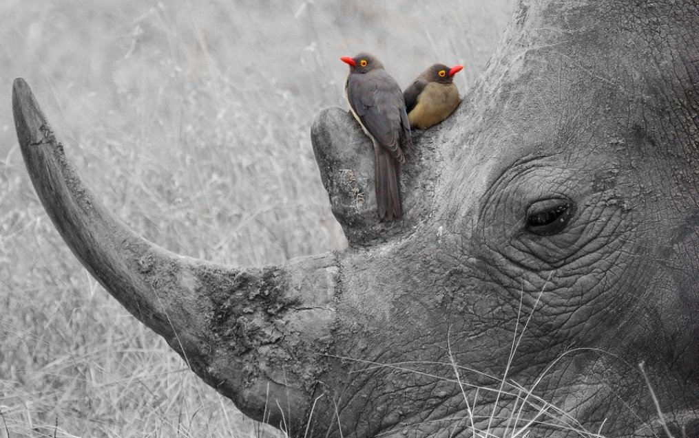 The little oxpecker didn’t just sit on the horn; it leaned in. It gently rested its head against the rhino’s rugged horn in a gesture that looked exactly like a quiet embrace. The giant, near-sighted rhino, in turn, sat in perfect stillness, completely trusting its tiny companion. The scene, a moment of connection between a giant and a creature small enough to fit in your hand, was profoundly touching. “It was the most human moment I’ve ever seen in the wild,” Zaheer later said.