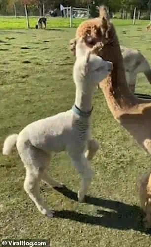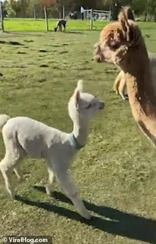Suddenly, from across the pasture, a soft, high-pitched cry was heard. A tiny baby alpaca (called a cria) had spotted its mother interacting with the strangers. With a burst of determination, the baby began to run. Its tiny, clumsy legs pounded the earth as it raced toward its mom. Sierra kept filming, her breath caught in her throat. When the cria reached its mother, it didn’t just stop. It did something astonishing: it rose up on its hind legs and wrapped its front legs around its mother, pressing its face into her chest in a perfect, undeniable “Baby Alpaca Hug.”