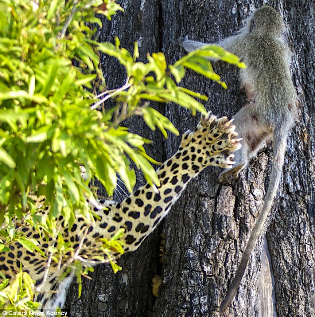 Observers watched breathlessly as the leopard extended its claws just inches away from the monkey’s leg, only to pause. Whether out of inexperience or mischief, the leopard’s hesitation gave the monkey time to plan its getaway.