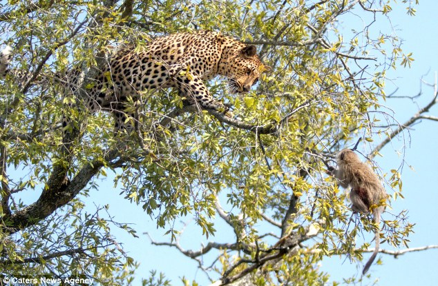 It started like any hunt. A female leopard, stealthy and strong, spotted a baby monkey resting in a marula tree—a perfect opportunity. She pounced. She caught the monkey. But instead of delivering the fatal blow… she let it go.