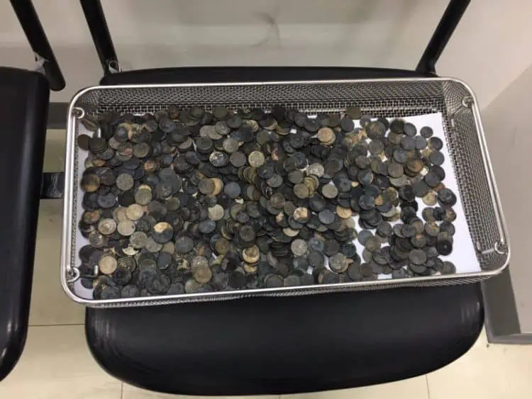 When rescuers noticed her deteriorating state, they brought her to a veterinary team at Chulalongkorn University. The prognosis was grim. Her body was 59 kg; nearly one-tenth of that had become metal. Her shell was opened, her internal organs exposed, and surgeons worked meticulously. What they pulled out — more than 5 kg of coins, fused and corroded — stunned even the most seasoned among them.