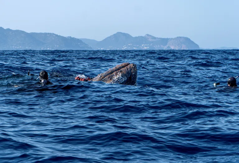 The whale was suffering. The net had wrapped around its body and fins, tightening with every movement, constraining its ability to breathe and navigate. Time was against it — the longer the entanglement lasted, the deeper the injury, exhaustion, or drowning risk.