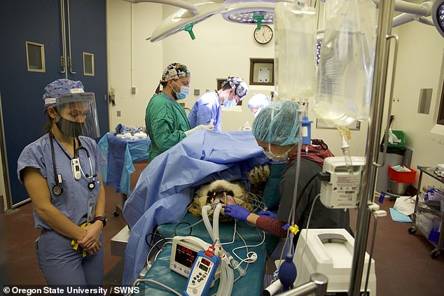 Veterinary surgeon Dr. Katy Townsend, associate professor at OSU’s Carlson College of Veterinary Medicine, led the procedure. “Essentially, it’s like spaying a domestic cat — but on a mega scale,” she explained.