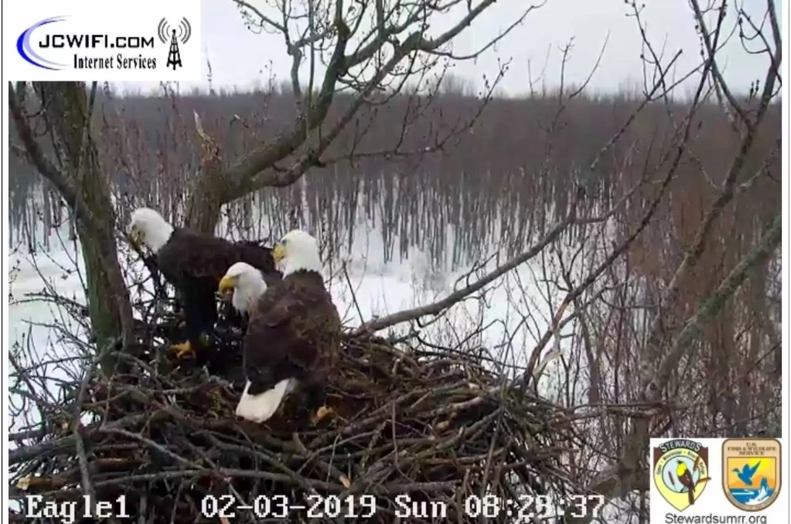 This nest is located within the Upper Mississippi River National Wildlife Refuge in Illinois, and has been watched via livestream by supporters around the globe. The refuge team reports that cooperative nesting among bald eagles is extremely rare. While nest helpers appear in some bird species, having two males actively coparenting is almost unheard of among raptors.